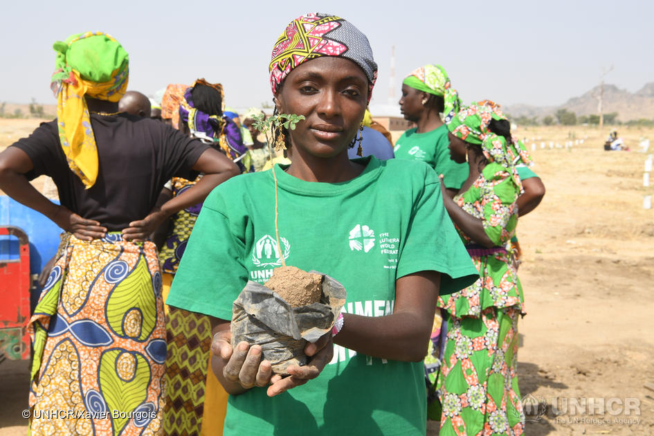 暴力、そしてテロによりカメルーンに逃れたこのナイジェリア難民の女性は、UNHCRとパートナー団体が実施している森林再生プロジェクトで、新しい生活手段を見い出しています。
